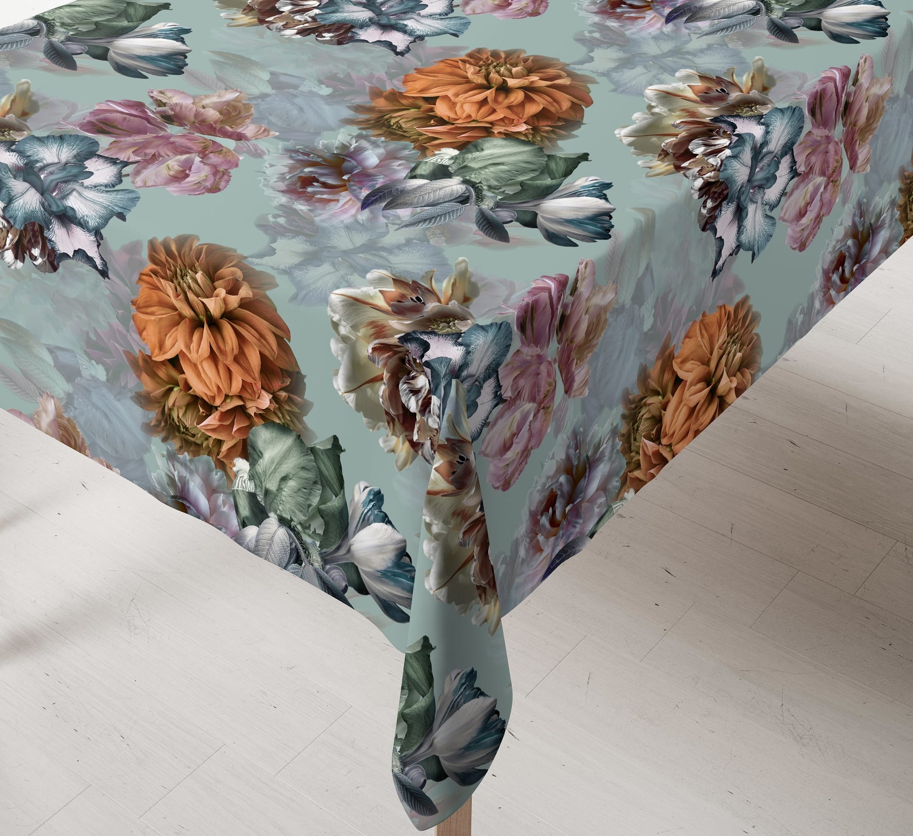 Obrus dekoracyjny w kwiaty 120x160 Peonia Miętowy