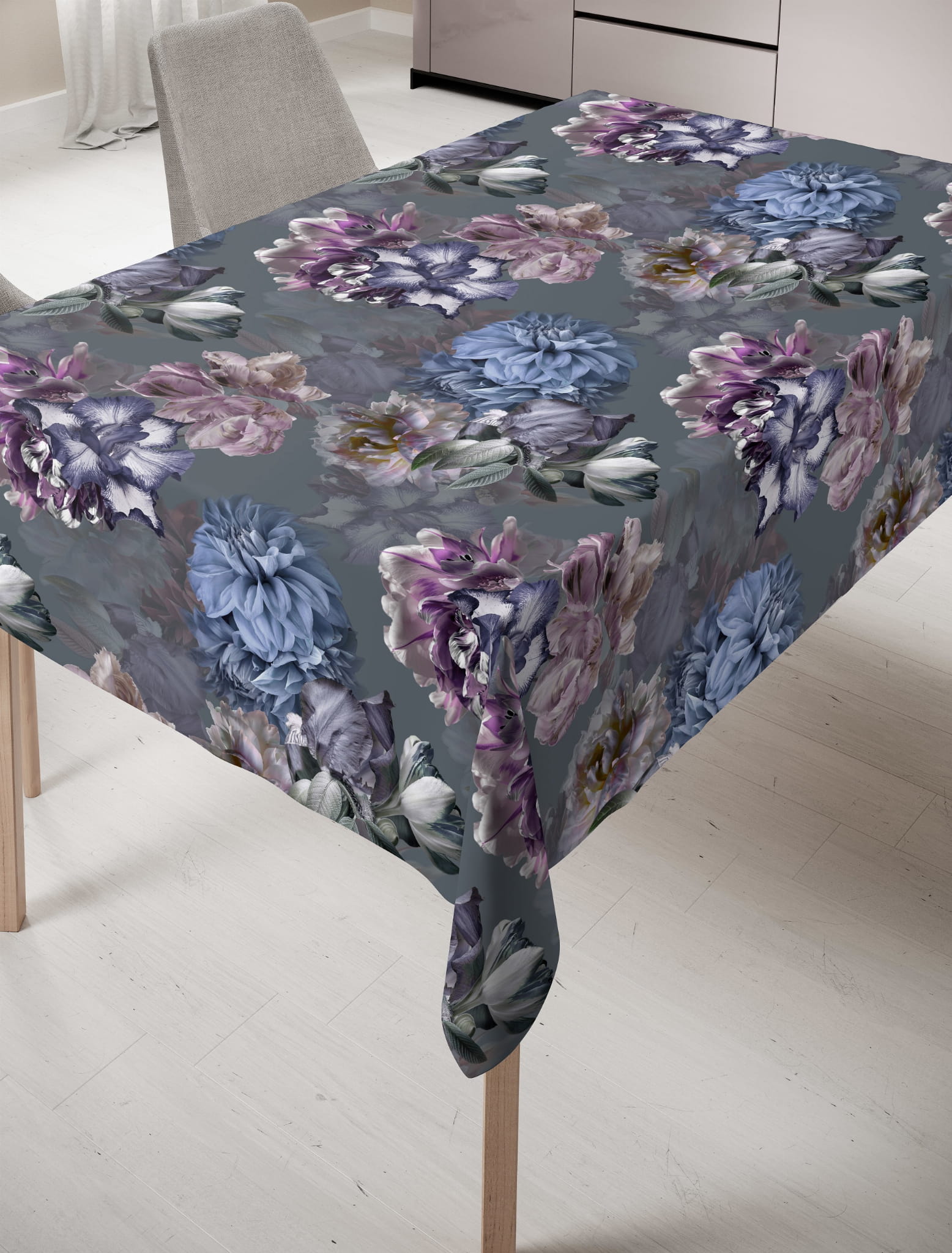 Obrus dekoracyjny w kwiaty 140x300 Peonia Szary