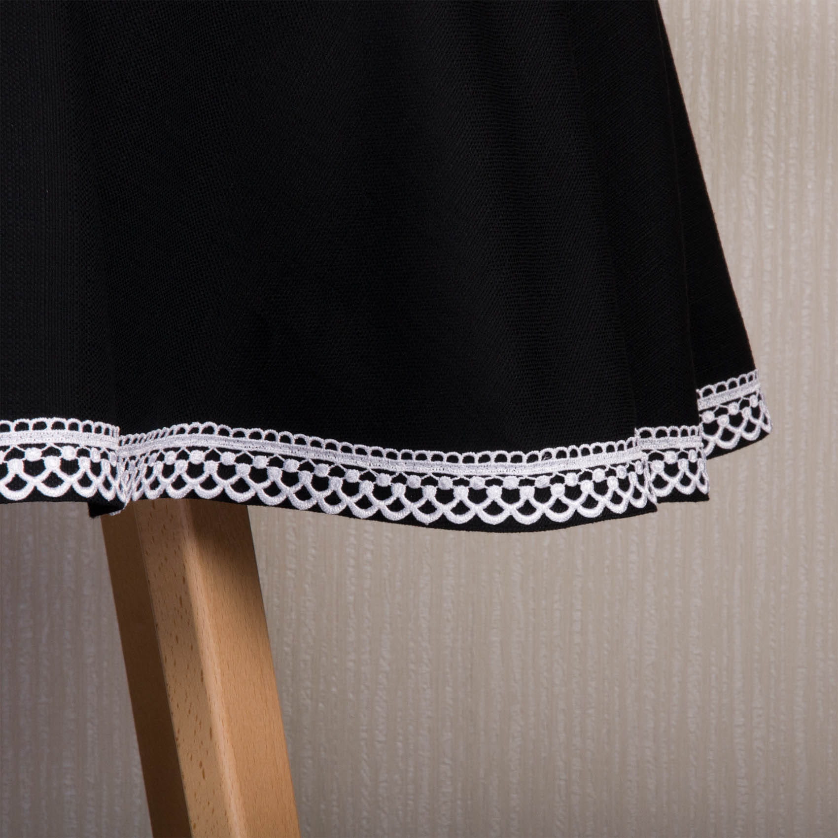 Dekoracyjny bieżnik szyty na wymiar z tkaniny plamoodpornej z koronką.