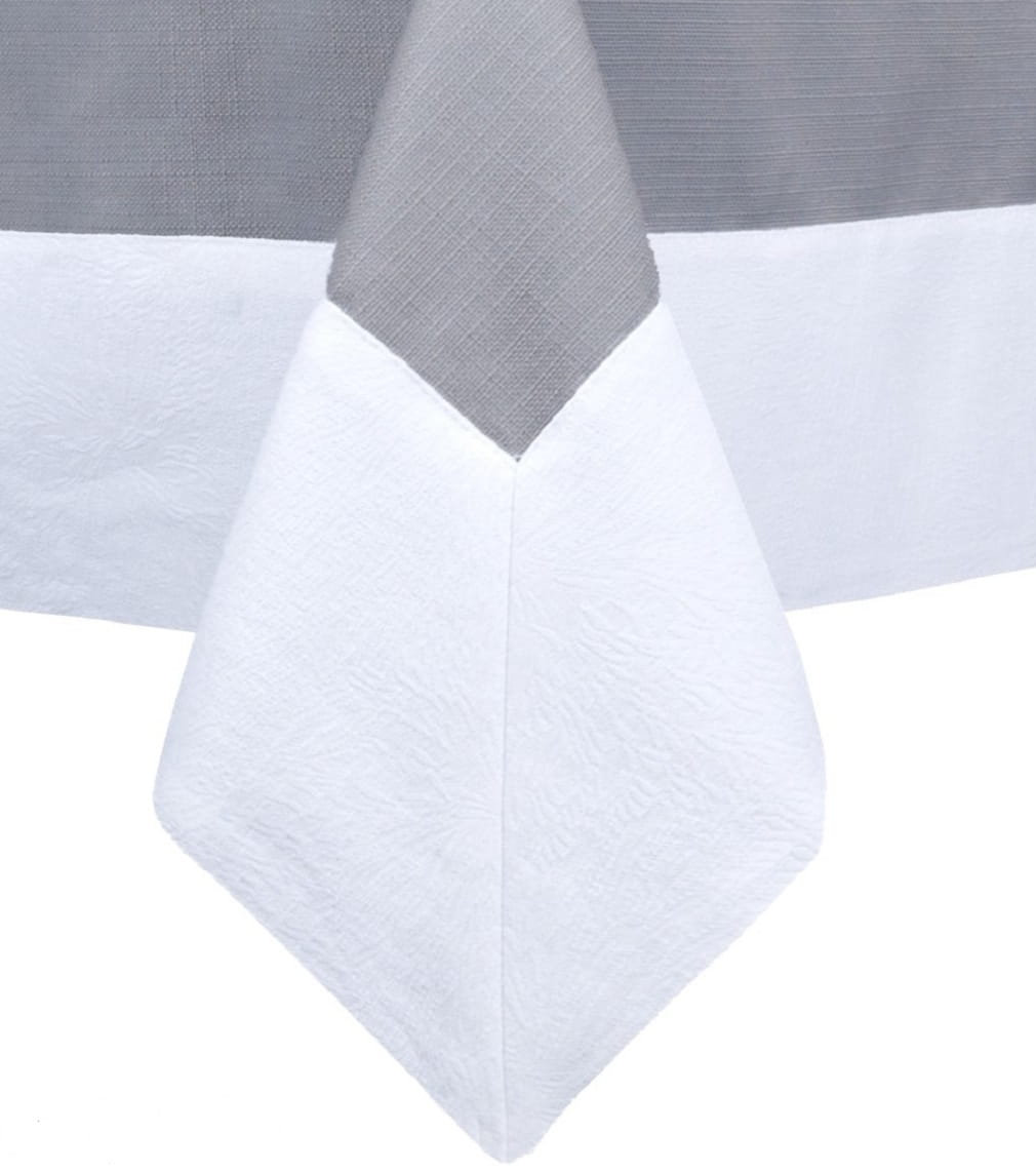 Obrusy uszyte są z tkaniny plamoodpornej z delikatna strukturą, wykończone dekoracyjną 14 cm ramką.