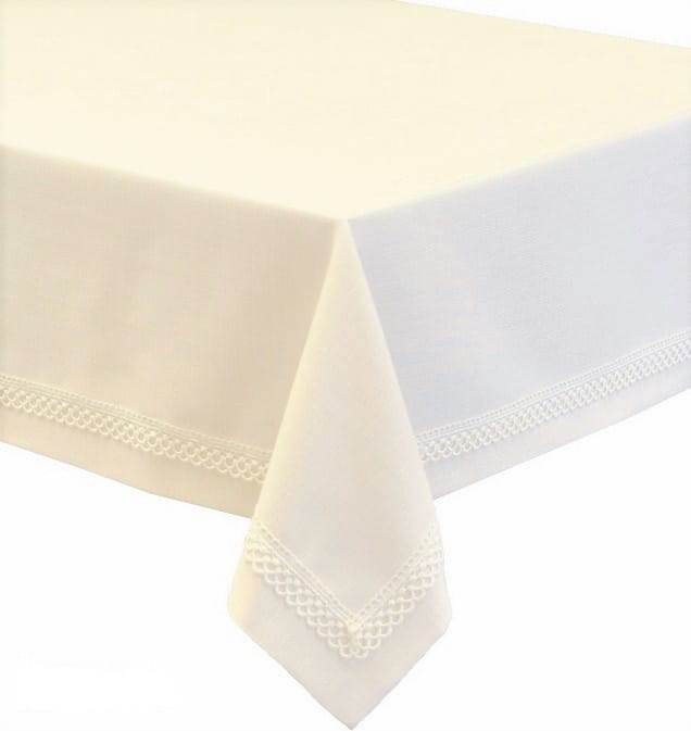 Obrus plamoodporny z ozdobną koronką.